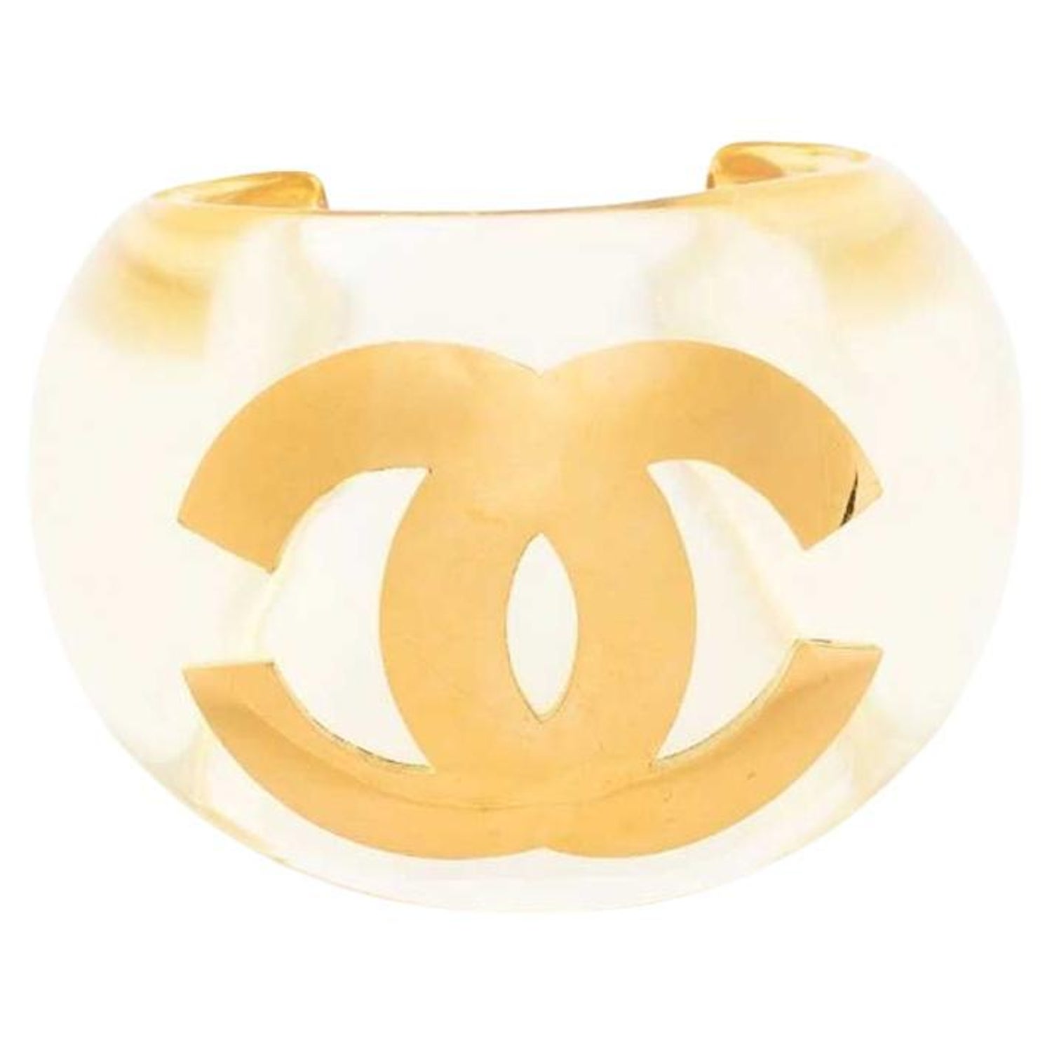 Chanel Cc Pink And White Plastic Wide Cuff Bracelet For Sale At 1stdibs